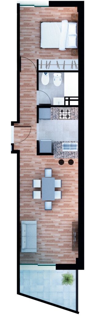 Estar Comedor: 2,95m x 5,40m Baño: 1,65m x 2,00m Dormitorio: 2,90m x 2,95m Cocina: 2,30m x 2,00m