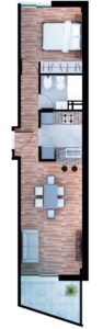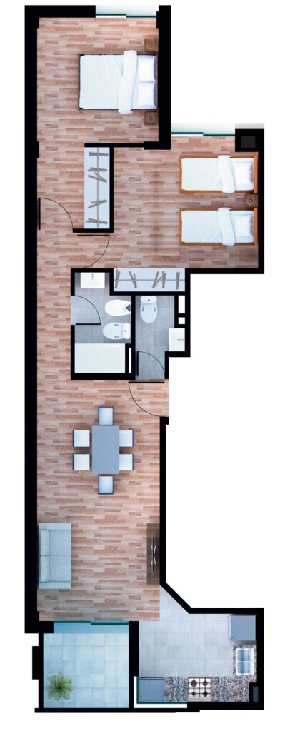 Estar Comedor: 2,95m x 5,80m Baño: 1,35m x 2,40m Dormitorio: 2,90m x 2,90m Dormitorio: 2,90m x 3,00m Cocina: 2,85m x 2,10m